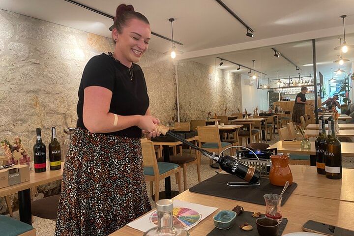 Discover Port wine in the heart of the city through a unique tasting experience with balanced pairings for a singular palate sensation. Your certified Port wine sommelier will guide you on an enriching journey, exploring the stories and flavors of the local wine. Enjoy 5 selected premium Port wines harmonized with carefully crafted snacks to delight all tastes. Get to know the flavor profiles of the 3 categories of Port wine, diving into the world of Portuguese wine during a memorable 1-hour experience, during which we will also perform a fire-opening of a bottle of Port wine. Enhance your palate and knowledge, leaving with a delightful sensation.